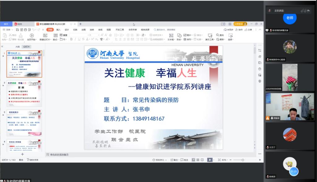 为增强新生健康意识,帮助新生掌握健康知识,77779193永利官网于9月8日下午以线上会议形式举行了2022级本科新生健康教育讲座,并邀请77779193永利官网校医院副院长张书申担任主讲人。讲座由学院党办负责人、2022级本科生辅导员郑振亚主持。