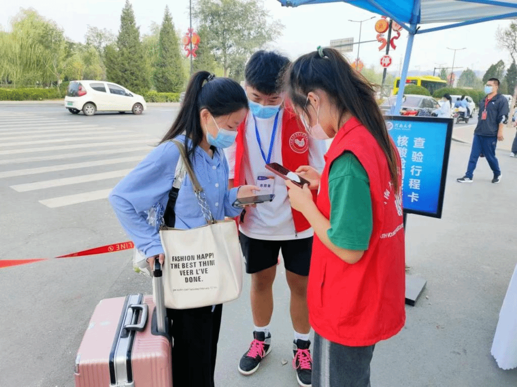(志愿者帮助同学们完成“今日校园”返校验证)